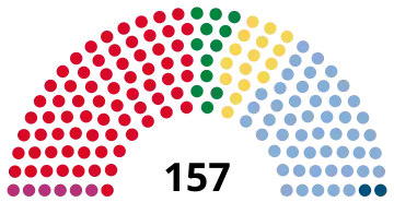 Last election 37.2%, 66 seats 35.3%, 53 seats 12.5%, 15 seats