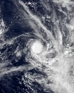 Several areas of convection persisted within the ITCZ in early March across the open Indian Ocean. One of these organized into a tropical storm on March 2 about 700 km (430 mi) south of Diego Garcia and was given the name Daodo.[21][22] On the following day, the JTWC began tracking it as Tropical Cyclone 21S.[2] Daodo moved slowly initially while quickly strengthening into a severe tropical storm. On March 4, a weak ridge steered the storm to the east, and the storm weakened slightly during this time. Three days later a stronger ridge to the east turned Daodo to the southwest, bringing it over its former path. On March 8, the JTWC upgraded the storm to the equivalent of a minimal hurricane. On the following day, the MFR upgraded Daodo to tropical cyclone status, estimating peak 10 minute winds of 135 km/h (85 mph), although it weakened back into a tropical storm on March 10. The storm accelerated to the southeast on the next day and maintained much of its intensity due to baroclinic interactions with a nearby anticyclone. On March 13, Daodo turned back to the southwest before moving more southward and later to the southeast. On March 18, the storm dissipated within a polar trough northwest of Île Amsterdam.[21][22]