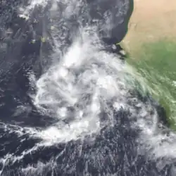 For three days a large trough of low pressure northwest of the system steered it north-northwest towards cooler waters. Moderate to heavy rain was reported along the west coast of Africa, but no damage was reported.[44] The system eventually weakened and merged with the low pressure trough. This unnamed storm was later added to the list of tropical storms in the annual summary for the Atlantic hurricane season.[6]