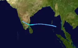 The final storm of the season, which formed in the eastern Bay of Bengal on November 9, hit eastern India as a 45 mph tropical storm on the 15th. It dissipated the next day over the country.