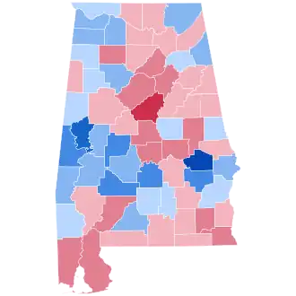 As of the 2024 presidential election, this is the last time a Democratic candidate won Lauderdale County, and the last time a Republican won Montgomery County.[4]