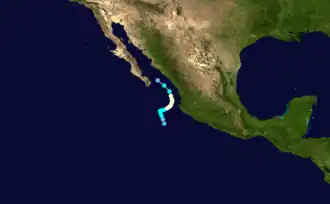 The precursor tropical disturbance produced locally heavy rainfall along the south coast of Mexico.[15] Authorities in Mexico closed the port at Acapulco to small fishing and recreational boats, and advised larger craft to use caution.[16] Damage from the storm, if any, is unknown.