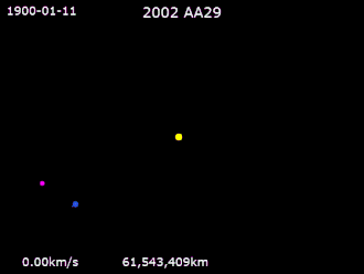 - ^ a b c "JPL Small-Body Database Browser: (2002 AA29)" (last observation: 2004-01-15; arc: 2.02 yr). Jet Propulsion Laboratory. Retrieved 30 March 2016.