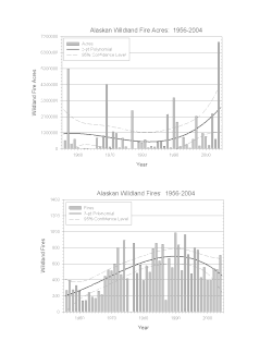 - [2] The University of Alaska Fairbanks shows graphical data pertaining to the amount of land burned and past wildfires in Alaska.