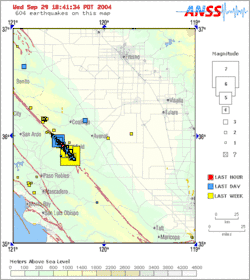 The 6.0 magnitude primary shock in 2004 was the result of a fault movement of about 18 inches (.5 meter). There have been no indications found that could have been used to predict this earthquake. Although well overdue, the probability of this quake occurring in 2004 has been estimated at ten percent. The magnitude of the event was consistent with previous earthquakes in this region.