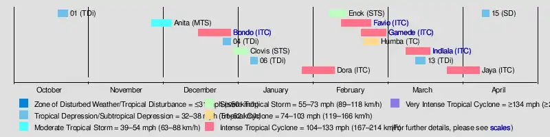 | Jaya | March 26 – April 8 | Intense Tropical Cyclone | 185 km/h (115 mph) | 935 hPa (27.61 inHg) | Madagascar | 1 | [6] | |