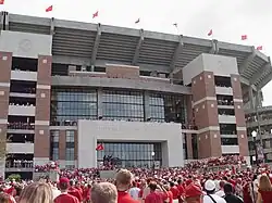 The 2006 season also marked the first played in Bryant–Denny Stadium after the completion of the north endzone expansion.[13] The $47 million expansion increased its overall capacity to 92,138 (then the 5th largest on-campus stadium), added several new luxury boxes and saw the completion of the Walk of Champions off University Boulevard.[14] The Walk of Champions, at the time, featured statues of the four national championship Alabama head coaches: Wallace Wade, Frank Thomas, Bear Bryant and Gene Stallings.[13] At that time a fifth space was left vacant for a future statue, and on April 16, 2011, the University unveiled a statue of Nick Saban for winning the 2009 national championship at that location.[15]