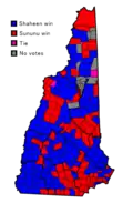 Shaheen: 40–50% 50–60% 60–70% 70–80% >90% Sununu: 40–50% 50–60% 60–70% 70–80% Tie: 40–50% | |||||||||||||||||