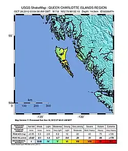 - ^ a b "M7.8 – Haida Gwaii, Canada". United States Geological Survey.