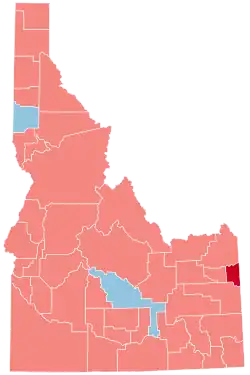 The 2012 United States presidential election in Idaho took place on November 6, 2012, as part of the 2012 United States presidential election in which all 50 states plus the District of Columbia participated. Idaho voters chose four electors to represent them in the Electoral College via a popular vote pitting incumbentDemocraticPresidentBarack Obama and his running mate, Vice PresidentJoe Biden, against Republican challenger and former Massachusetts GovernorMitt Romney and his running mate, CongressmanPaul Ryan. Prior to the election, 17 news organizations considered this a state Romney would win, or otherwise considered as a safe red state. Romney and Ryan carried Idaho with 64.09% of the popular vote to Obama's and Biden's 32.40%, thus winning the state's four electoral votes.[1] Romney's victory in Idaho made it his fourth strongest state in the 2012 election after Utah, Wyoming and Oklahoma.[2] He improved on McCain's performance in 2008, expanding his margin from 25.3% to 31.69% and flipping Teton County which had previously voted for Obama.