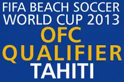 The 2013 OFC Beach Soccer Championship took place from 31 August to 2 September 2013 on the grounds of the University of New Caledonia in Nouméa, New Caledonia.[1] It acted as a qualifier for the 2013 FIFA Beach Soccer World Cup. This time around, a second OFC team qualified alongside Tahiti for the World Cup, due to the facts that Tahiti is the host of the World Cup and that the OFC is only supposed to have one representative.