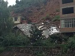 The 2014 Ludian earthquake struck Ludian County, Yunnan, China, with a moment magnitude of 6.1 on 3 August.[6] The earthquake killed at least 615 people, injuring at least 2,400 others. At least 114 people remained missing.[9] Over 12,000 houses collapsed and 30,000 were damaged.[10] According to the United States Geological Survey, the earthquake occurred 29 km (18 mi) west-southwest of Zhaotong city at 16:30 local time (08:30 UTC).[11][12][13]