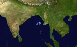 Under the influence of an active Intertropical Convergence Zone, the season got off to one of its earliest starts on record, with a depression developing over the Andaman Sea during January 4.[1] Over the next couple of days the system moved westwards and made landfall on Sri Lanka, where it weakened into an area of low pressure.[1] Over the next few months the basin remained quiet, before the precursor cyclonic circulation to Depression BOB 02 developed during May 18.[1] As the cyclonic circulation developed it helped the southwest monsoon, advance into the Andaman Sea and parts of the Bay of Bengal, before it developed into a depression during May 21.[2] The depression was short lived and weakened into a remnant low, over the Bay of Bengal during May 23.[1] The southwest monsoon was subsequently delayed by six days setting in over the Indian state of Kerala and eventually moved over the state during June 6.[2] Over the next few days the monsoon set in further over the Bay of Bengal, while it was enhanced over the Arabian Sea by the formation of Cyclonic Storm Nanauk.[1][2] By June 18, the monsoon covered most of the North Indian Ocean and parts of Gujarat, Konkan & Goa, Odisha, Jharkhand, Bihar and Gangetic West Bengal.[2]