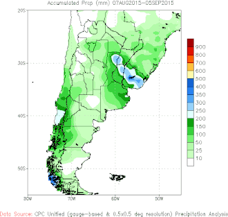 ![]() Level of rain in Argentina between August and September 2015 | |