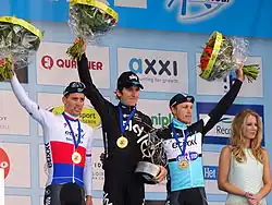 In April, Bradley Wiggins won his final time trial for the team at the Three Days of De Panne, beating Stefan Küng by 10 seconds.[58]