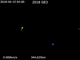 - Asteroid 2018 GE3 flew past Earth at 0.5 LD, The Watchers, 16 April 2018