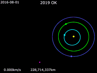- ^ a b c d e "JPL Small-Body Database Browser: (2019 OK)" (2019-07-25 last obs.). Jet Propulsion Laboratory. Retrieved 28 July 2019.