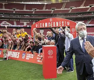 ![]() Atlético Madrid players celebrate winning La Liga at the Wanda Metropolitano. | ||||