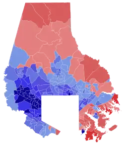 ![]() Olszewski: 50–60% 60–70% 70–80% 80–90% >90% McDonough: 50–60% 60–70% 70–80% | |||||||||||||||||