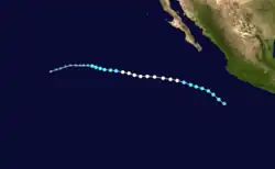 The 2024 Pacific hurricane season was a slightly below-average season that saw 15 tropical cyclones develop overall, of which 13 developed into named storms.[nb 1] Among them, 5 developed into hurricanes, of which 3 intensified into major hurricanes. The season officially began on May 15 in the eastern Pacific basin (east of 140°W) and on June 1 in the central Pacific (between 140°W and the International Date Line); both ended on November 30. These dates, adopted by convention, historically describe the period in each year when most subtropical or tropical cyclogenesis occurs in these regions of the Pacific Ocean.[1] For the third consecutive year, there were no pre-season tropical cyclones in either basin, and the season got off to the slowest start of any Pacific hurricane season on record in the satellite era, [2] with the first eastern Pacific tropical storm, Aletta, not forming until July 4. The first (and only) central Pacific tropical cyclone, Hurricane Hone, formed on August 22, becoming the first named storm to develop in the basin since 2019.[3] The final system of the season, Tropical Depression Fourteen‑E, dissipated on November 7.