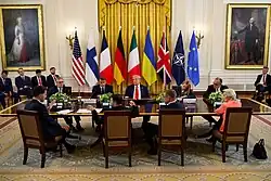 A summit between Trump and Zelenskyy at the White House was held on August 18. Prior to this summit, EU leaders met with Zelenskyy at the Ukrainian embassy in Washington, D.C.[52]