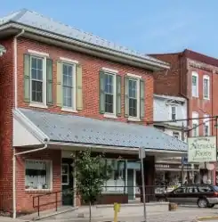 Now home of Newport Natural Foods, I was home to the following businesses: The William "Bill" Welfley Drug Store, Earl Gower Drug Store, Charles E. Bosserman Drug Store & Soda Fountain, State Liquor Store, the Post Office from 1922 to 1932, Fleck and Hyman Clothing, D. H. Spots Clothing, Marx Dukes Clothing. Originally known as the Dr James B. Eby building