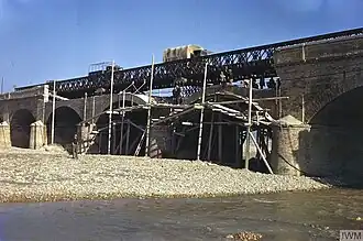 No 1 Platoon rejoined the company in late May 1944. In June the company was attached to 4th Indian Division for its advance through the mountains towards Florence, clearing mines and maintaining 'Blue Route'. The company moved steadily northwards, repairing bridges, with No 3 Platoon in the lead. By August the company was at Rome, where it joined I Canadian Corps, moving with it to Rimini by 24 September, where the company built an airstrip for Auster light aircraft. In October the company moved forwards once again, strengthening Bailey bridges erected by the front line engineers. On 11 November the unit built a Bailey bridge under fire at Portoforce, suffering some casualties. It spent the winter in the area of San Petro and then Ravenna, maintaining routes.[17][18]