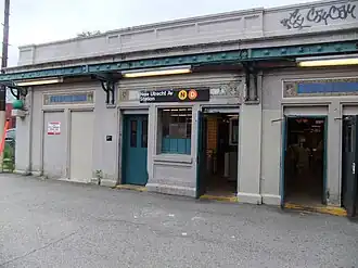 The West End Line platforms opened on June 24, 1916 along with the first portion of the BMT West End Line from 36th Street on the BMT Fourth Avenue Line to 18th Avenue station.[4][5] The line was originally a surface excursion railway to Coney Island, called the Brooklyn, Bath and Coney Island Railroad, which was established in 1862, but did not reach Coney Island until 1864.[6] Under the Dual Contracts of 1913, an elevated line was built over New Utrecht Avenue, 86th Street and Stillwell Avenue.[7][8][9]