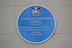 A plaque in honour of Elizabeth Gaskell adorns the front of the house