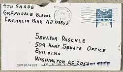 Two more anthrax letters, bearing the same Trenton postmark, were dated October 9, three weeks after the first mailing. The letters were addressed to two U.S. senators, Tom Daschle of South Dakota and Patrick Leahy of Vermont. At the time, Daschle was the Senate majority leader and Leahy was head of the Senate Judiciary Committee; both were members of the Democratic Party. The Daschle letter was opened by an aide, Grant Leslie, on October 15, after which the government mail service was immediately shut down. The unopened Leahy letter was discovered in an impounded mailbag on November 16. The Leahy letter had been misdirected to the State Department mail annex in Sterling, Virginia, because a ZIP Code was misread; a postal worker there, David Hose, contracted inhalational anthrax.