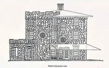 When first constructed, features of the model fireproof farmhouse included a state-of-the-art wood fired water system which pumped spring water to a third-floor holding tank; a coal fired furnace with radiators in each room for heat; a similarly stone built garage of sufficient size to accommodate two large touring cars; and awnings and shutters with a concrete sidewalk all around. The walls are of granite, the floors and ceilings of poured concrete with steel reinforcement, the roof is lined with copper. Woodwork, plaster, brickwork, and concrete were all specced to be of "first class materials and workmanship". Himmelwright estimated its lifespan at 400–500 years.