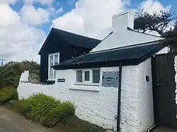 On 27 July 1866 Abermawr became the eastern terminal of the Transatlantic telegraph cable when Brunel completed an ambitious scheme to lay a telegraph cable under the Atlantic Ocean. The cable was laid by Brunel's steam ship Great Eastern between Trinity Bay in Newfoundland and Valentia Island in Ireland. It then crossed Ireland via a landline before going under the Irish Sea at Wexford to re-emerge at Abermawr. Telegraph operators who were stationed in a corrugated iron hut would retransmit messages to London via the SWR and GWR telegraph wires, enabling the first ever telegraph communications between Britain and North America. A second cable was laid in 1880, this time however to Blackwater. Abermawr telegraph relay station continued in operation until 1922/3, when cables were damaged by a storm and Abermawr was abandoned.[5] The hut still stands today and is in use as a private house.[6]