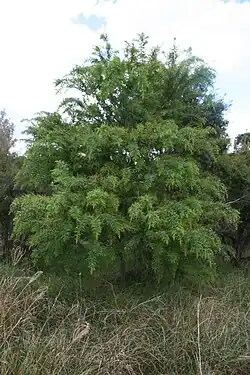 Endemic to New South Wales, Acacia pubescens is restricted to the Sydney Basin, where it is found in scattered populations from Bardwell Valley to Oakdale and Mountain Lagoon. Most plants are located around Bankstown, Fairfield and Rookwood in southwestern Sydney, and Pitt Town in the city's northwest.[10] Most of its habitat has vanished with the spread of housing in Sydney's suburbs,[5] and it is classified as "Vulnerable".[1] It is found on clay soils and associated plant communities—alluvial- and shale-based soils. It grows in open sclerophyll forest, associated with such species as grey box (Eucalyptus moluccana), broad-leaved ironbark (E. fibrosa), white feather honeymyrtle (Melaleuca decora), and blackthorn (Bursaria spinosa).[3]