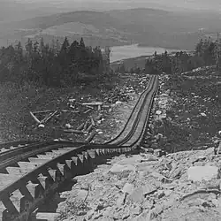 The first French missionary colony in America was established on Mount Desert Island in 1613. The colony was destroyed a short time later by an armed vessel from the Colony of Virginia as the first act of overt warfare in the long struggle leading to the French and Indian Wars. The island was granted to Antoine de la Mothe Cadillac by Louis XIV of France in 1688, but ceded to England in 1713. Massachusetts governor Sir Francis Bernard, 1st Baronet assumed control of the island in 1760. In 1790, Massachusetts granted the eastern half of the island to Cadillac's granddaughter, Mme. de Gregoire, while Bernard's son John retained ownership of the western half. The first record of summer visitors vacationing on the island was in 1855, and steamboat service from Boston was inaugurated in 1868. The Green Mountain Cog Railway was built from the shore of Eagle Lake to the summit of Cadillac Mountain in 1888. In 1901, the Maine Legislature granted Hancock County a charter to acquire and hold land on the island in the public interest. The first land was donated by Mrs. Eliza Homans of Boston in 1908, and 5,000 acres (2,000 ha; 7.8 sq mi; 20 km2) had been acquired by 1914.[29]