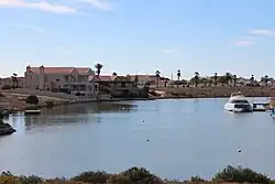 Admiral Island is a manmade island and residential estate situated in Port Owen, which lies between the towns of Laaiplek and Velddrift on the West Coast region of South Africa.[1] The area of the island is about 21 hectares, with a circumference of 3 km. The island is bounded on two sides by 2 km of private waterways and one side faces the Berg River. Admiral Island is a residential development with no commercial zones. Of the 191 plots on the island about two thirds are water-front stands.