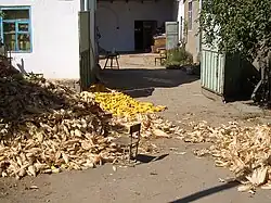 Due to its climate, Kyrgyzstan was considered as an excellent location for growing cotton, tobacco, wheat, and other crops in the Soviet period. The country has long had agriculture as a core sector of its economy, but its role has declined over time: agriculture has fallen from 43.9% of the GDP in 1996 to 15.9% in 2015, although there is significant regional variation in the size of the agricultural economy.[2] The mono-crop approach of farming was deleterious to the soil and cotton production led to an exhaustion of water resources.[3] In the 1990s and early 2000s, the Kyrgyz agricultural sector experienced substantial reform but the pace of change subsequently slowed and strategic government development became more small-scale and limited.[2]