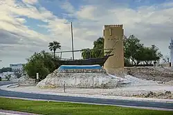 To protect both the coveted Ain Hleetan Well and the town's fledgling harbor, the villagers built the Al Khor Towers around 1900.[12] Originally a collection of eight towers, only three survived throughout the ages. Multiple different families were tasked with maintaining and renovating each tower.[3] Located next to these towers at the northern boundary of Al Khor was the Barahat Al-Jawhar, a cultural venue of unknown origins dating back to either the late 19th century or early 20th century. Holidays, cultural activities such as ardah performances, and wedding celebrations were held here due to the large amount of open space in this structure. It had arches on all sides, its façade had geometric patterns and it was built of a type of stone not naturally found in the region. Cannons belonging to the Ottoman garrison at Al Khor were found inside, suggesting it may have been built by the Ottomans for a defensive purpose.[13]