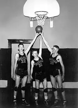 In 1945, he attended the World Series between the Chicago Cubs and Detroit Tigers. In the fall of 1948, he attended his first National Basketball Association (then-known as the National Basketball League) game as the Waterloo Hawks hosted league-MVP Don Otten's Tri-Cities Black Hawks, and would soon witness George Mikan play in-person during another game in Waterloo.[3] He continued to scan the radio dial every night to hear the Joe Louis big boxing fights of the era, Cubs broadcasts, national football, basketball, or any and every other sport he could get tuned through his receiver. Concurrently, as an active youth with a basketball hoop now-propped up in a tree on the farm, he made the starting line-up of his high-school basketball team for three seasons, playing the position of point-guard. His high school Coach Chuck Lovin remembered McCoy as a "good shot" who was "intense" about everything he did in high school, from athletics to school plays.[3]