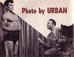 Urban began his career as a commercial photographer.[4] In 1937, he began advertising his physique photographs in the back pages of Strength & Health magazine.[5] At the time, Urban shot mostly nude photographs.[6] The catalogue sheets sent to customers were doctored with "inked-in" posing straps, but these would be omitted from full-sized prints purchased from the catalogue.[7]