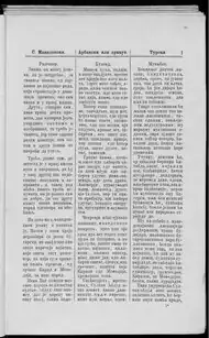 Sample of Albanian language text, written in Cyrillic characters (central column). From the book "Речник од три језика (Rečnik od tri jezika)"