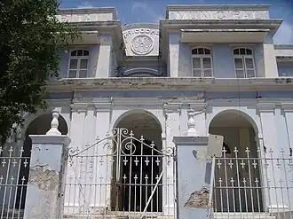 By 1885 the municipality had completed a one-story neoclassical style structure that covered an entire urban block. This building remained unchanged until the 1918 earthquake which damaged part of the southern side.[10]