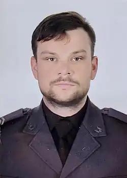 Aliaksiej Mikalajevič Skoblia (Belarusian: Аляксей Мікалаевіч Скобля, 14 March 1990 – 13 March 2022), nom de guerre "Tur" (Тур, lit. "Bison"), was a Belarusian soldier who was deputy commander of the Kastuś Kalinoŭski Battalion under the Armed Forces of Ukraine. Skoblia died defending Kyiv from advancing Russian troops during the Battle of Kyiv in the 2022 Russian invasion of Ukraine. He was posthumously conferred the title of Hero of Ukraine by President of Ukraine Volodymyr Zelenskyy.[1][2]