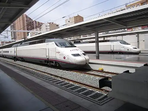 Two AVE Class 100 trains at the Alicante terminal. | |||||||||||
