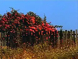 The film consists of a single shot that begins panning along a picket fence. As the camera continues to pan, red flowers on the fence are seen. The film ends after the camera angles upward to show a horizontal telephone wire and, finally, a blue sky. It uses "All My Life" by Ella Fitzgerald as its soundtrack.[1]