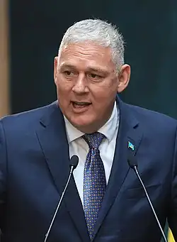 Chastanet was Minister for Tourism and Civil Aviation and a member of the Saint Lucian Senate from 2006 to 2011.[5] Chastanet unsuccessfully ran for a parliament seat for Soufriere Constituency in the 2011 general election.[8][9] In 2013, he was elected leader of the opposition United Workers Party.[10] Chastanet won the parliament seat for Micoud South constituency in the 2016 general election.[11] He was sworn in as Prime Minister on 7 June 2016.[12] He held the additional portfolios of Minister of Finance, Economic Growth, Job Creation, External Affairs and the Public Service.[13]