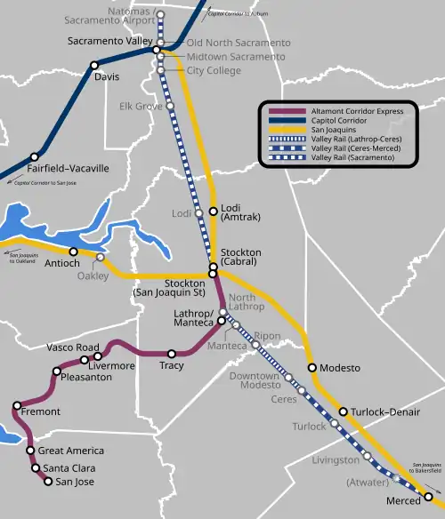 52. ^ "Valley Rail Sacramento Extension Project Draft Environmental Impact Report" (PDF). ACE. AECOM. Archived from the original (PDF) on August 30, 2021. Retrieved May 9, 2020.