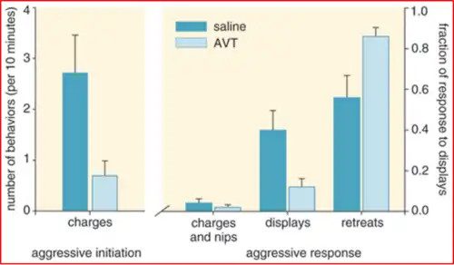 - ^ a b c d e Lema, Sean C.; Nevitt, Gabrielle A. (December 2004). "Exogenous vasotocin alters aggression during agonistic exchanges in male Amargosa River pupfish (Cyprinodon nevadensis amargosae)". Hormones and Behavior. 46 (5): 628–637. doi:10.1016/j.yhbeh.2004.07.003. PMID 15555505.