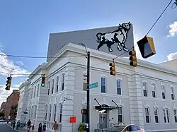 Nearby, but not part of the multi-use redevelopment district, is the Durham Bulls Athletic Park, the studios of Fox 50, and the Durham Performing Arts Center. The Historic District is part of a large urban renewal project in downtown Durham designed to bring residents, businesses, and shoppers to the formerly blighted downtown area. The campus had been the headquarters of the American Tobacco Company, once the largest manufacturer of cigarettes in the United States. The mostly abandoned campus was purchased by the Capitol Broadcasting Company in 2001 as part of a plan to redevelop downtown Durham.[3] Other companies have completed similar plans, Measurement Incorporated purchased and renovated the Brodie Duke Warehouse, the Imperial Tobacco Warehouse, and BC Remedy Building. In 2021, Cristo Rey Research Triangle High School opened its doors in one of the buildings.[4]