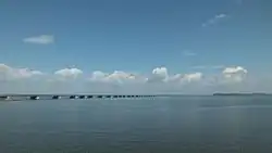 The Amur Bay Bridge (Russian: Мост через Амурский залив) is the low-water bridge in Vladivostok, Russia, that connects the De Frieze Peninsula with the vicinity of the Sedanka microdistrict (микрорайон Седанка) of the Muravyov-Amursky Peninsula, and is part of the highway “Novy Village (Новый) - Peninsula De Friz (Де-Фриз) - Sedanka Station (Седанка) - Patroclus Bay (Патрокл)”. It is one of the three large bridges completed for the 2012 APEC Summit in Vladivostok, the other two being the Russky Bridge and the Zolotoy Bridge.[1]