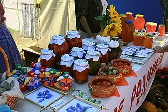 Many Anastasian settlements produce goods from the Siberian cedar characteristic of the movement (products such as cedar oil, cedar kasha, and cedar amulets) and from birch,[111] others produce willow tea,[108] while in the northwest of Russia other settlements produce "Ivan's tea", a fireweed tea, which they believe to be an indigenous and authentic beverage of the Russian peasants, a legacy of the ancient Russian culture, which has healing and relaxing effects and "suits the body and soul of the Russians", contrary to foreign and harmful beverages.[55] The Grishino village in Leningrad Oblast was among the first to produce "Ivan's tea", and they organised the "Festival of Russian Tea" with the support of the local administration.[55] Other Anastasians grow a variety of vegetables and fruits, one of the most successful products being strawberries.[108] Other settlements manufacture a variety of goods such as solar panels, hives, or sell milk.[108] Beekeeping is a very widespread activity.[68]
